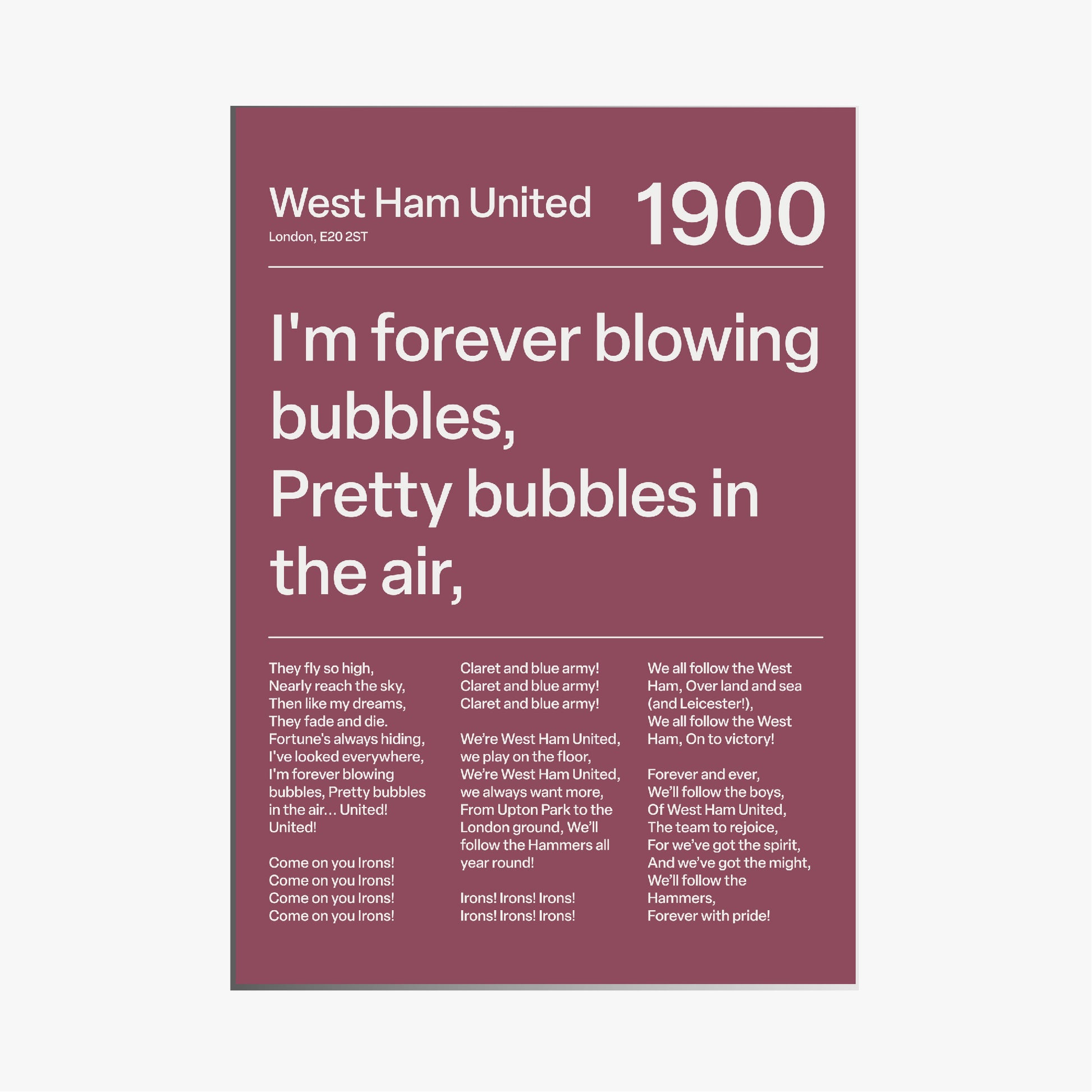 "I´m Forever Blowing Bubbles" West Ham F.C. Art Print (Maroon)