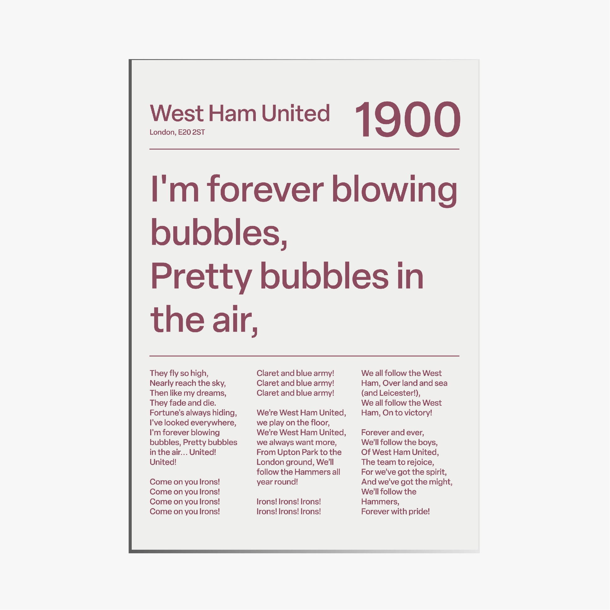 "I´m Forever Blowing Bubbles" West Ham F.C. Art Print (White)