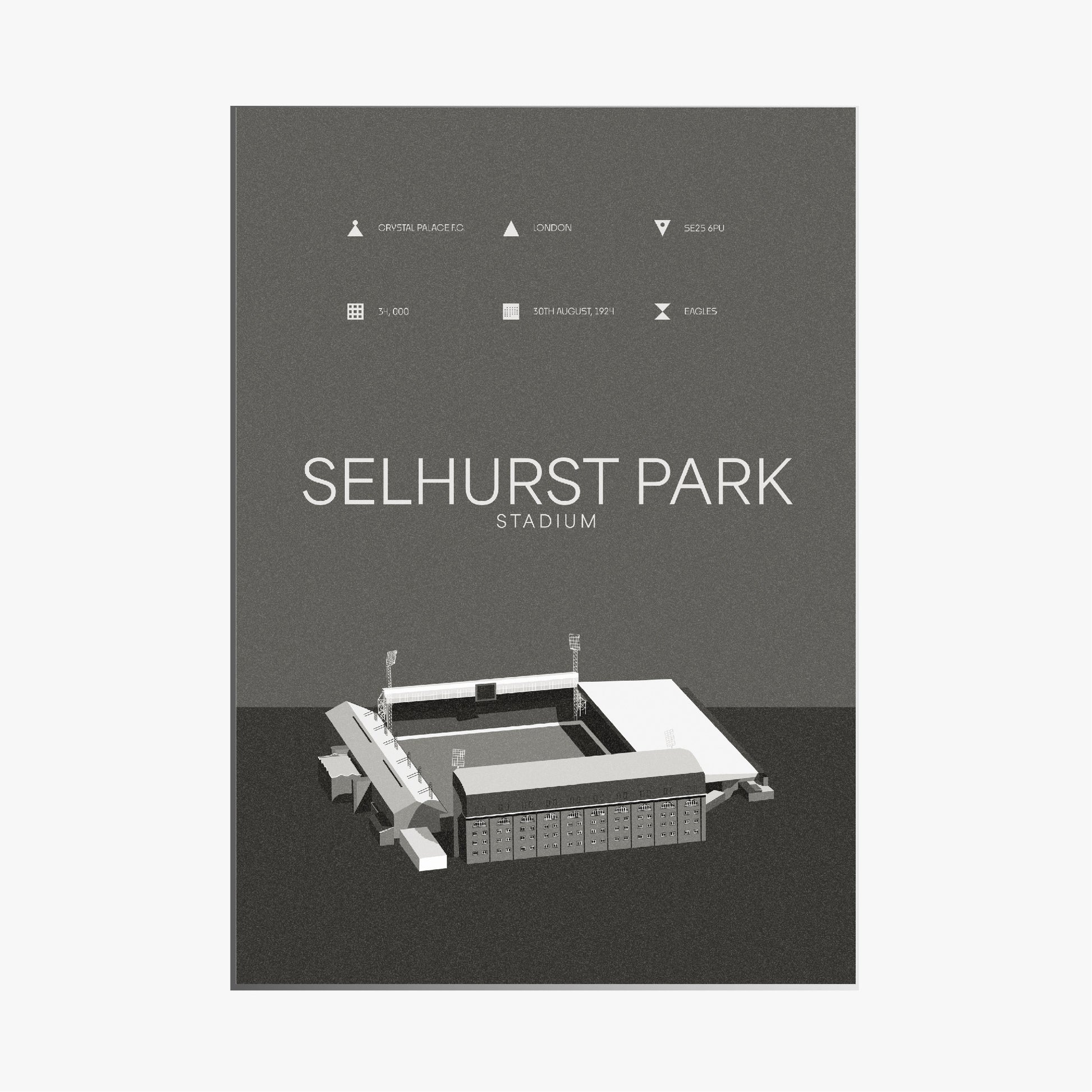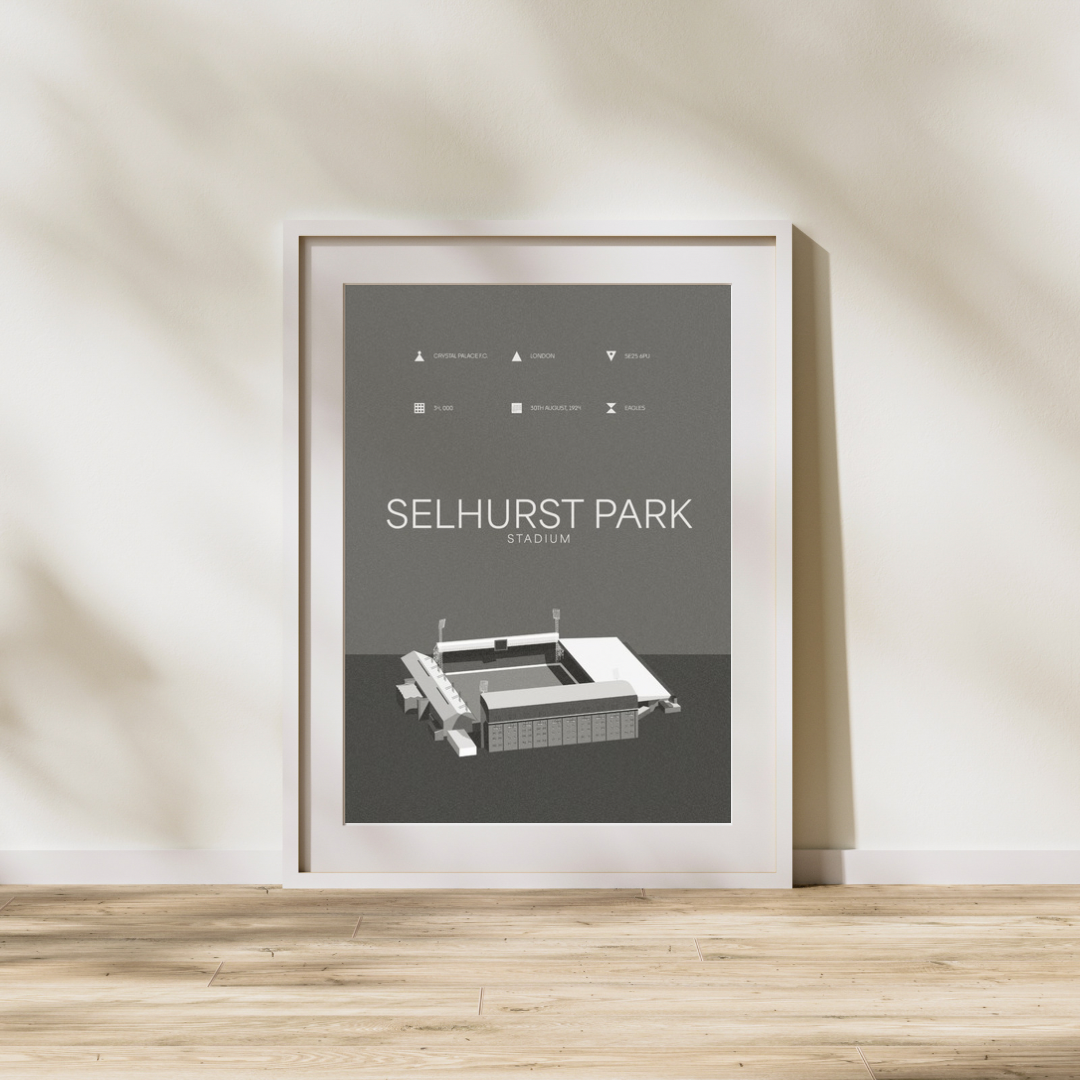 Capture the essence of Crystal Palace´s iconic Selhurst Park Stadium with this black and white art print. Featuring clean lines and a modern design, this poster is perfect for any Crystal Palace FC fan or football enthusiast looking to add a touch of elegance to their space.