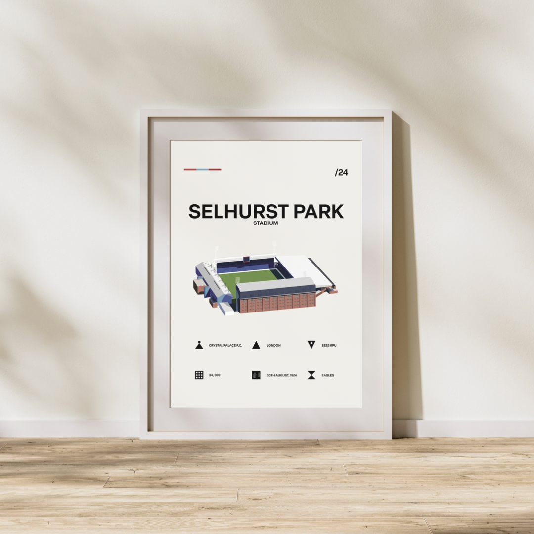 Capture the essence of Crystal Palace´s iconic Selhurst Park Stadium with this art print. Featuring clean lines and a modern design, this poster is perfect for any Crystal Palace FC fan or football enthusiast looking to add a touch of elegance to their space.